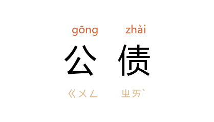 ⒈ 国家或地方举借的债。是国家以信用方式吸收资金的一种形式。分“内债”和“外债”。内债是向国内举借的债,分“长期公债”和“短期公债”。外债是向国外举借的债,其基本形式是向外国借款。