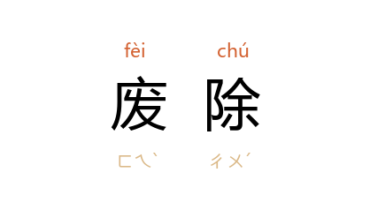⒈ 取消,全部丢弃——主要用于法律,习惯,制度,传统。