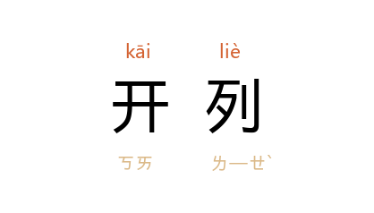 引清 孔尚任 《桃花扇·迎驾》:“只空衔名,取本縉绅来,快快开列。”清 黄六鸿 《福惠全书·编审·审后出示》:“按里逐户明白开列,出示晓諭。”秦牧 《艺海拾贝·两代人》:“单说从医生出身的作家吧,从世界文学史中可以开列一张十分可观的名单。”