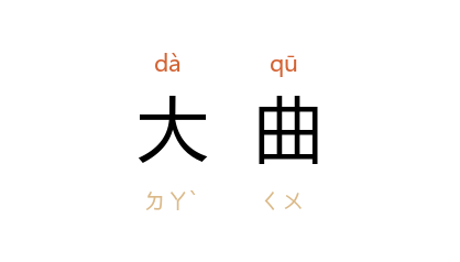 ⒈ 乐曲名。由汉、魏至唐、宋间渐渐发展而成的一种大型歌舞乐曲。渊源于汉、魏时代的相和歌及清商曲,宋书卷二十乐志三载有大曲和歌词。唐大曲多以诗篇配乐叠唱,而宋大曲的歌词则以词为主。