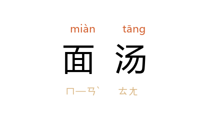 ⒉ 麪湯:方言。汤面。加作料带汤的面条。