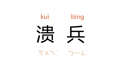 引《旧唐书·段秀实传》:“败将溃兵,争道而入。”何其芳 《记王震将军》:“溃兵到处都是。”