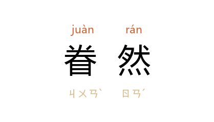⒈ 亦作“睠然”。回视貌。顾念貌;依恋貌。
