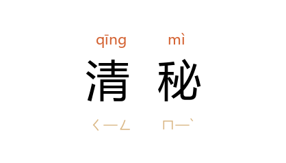 ⒈ 亦作“清秘”。谓清净秘密之所。多指宫禁之地。引申为清贵。犹秘密。