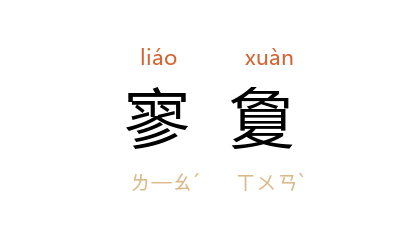 引唐 贾岛 《登楼》诗:“远近涯寥敻,高低中太虚。”明 顾起纶 《国雅品·士品三》:“其诗如空严曲瀨,宛转寥敻,时復滴沥,得幽闲真趣。”陈三立 《学堂感而有赠》诗:“剑珮冷无声,深堂步寥敻。”