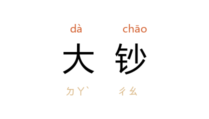 ⒉ 乐器名。俗称北管戏中的大钹为「大钞」。