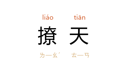引《古尊宿语录·云门匡真禅师广录》:“三世诸佛总在儞脚跟下,三十年后鼻孔撩天。”元 耶律楚材 《万松老人<评唱天童觉和尚《颂古从容庵录》>序》:“若要脚跟点地,鼻孔撩天,却须向这葛藤里穿过,始得。”《儿女英雄传》第七回:“鼻孔撩天,包牙外露。”
