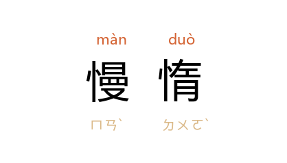 引《商君书·垦令》:“壹山泽,则恶农、慢惰、倍欲之民无所於食,无所於食则必农。”晋 葛洪 《抱朴子·用刑》:“肃恭少怠,则慢惰已至;威严暂弛,则羣邪生心。”《三国演义》第四回:“帝天资轻佻,威仪不恪,居丧慢惰,否德既彰,有忝大位。”