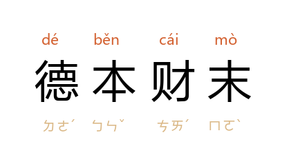 引语本《礼记·大学》:“德者,本也;财者,末也。”孔颖达 疏:“德能致财,财由德有,故德为本财为末也。”清 昭槤 《啸亭杂录·李毓昌》:“今岁某赴科场,皇上所命题,即以‘德本财末’为言,某虽不肖,敢欺君纳贿耶?”