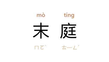 ⒈ 亦作“末廷”。谓朝堂下首的末位。