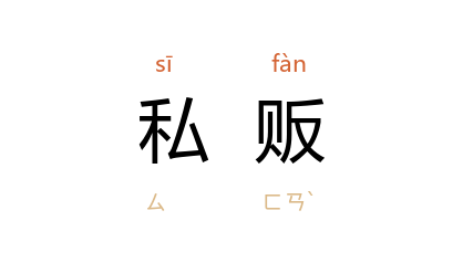 引《新唐书·食货志四》:“盐铁转运使 崔珙 又增 江 淮 茶税,故私贩益起。”宋 欧阳修 《论茶法奏状》:“茶之新法既行,而民无私贩之罪。”鲁迅 《三闲集·流氓的变迁》:“和尚喝酒他来打,男女通奸他来捉,私娼、私贩他来凌辱,为的是维持风化。”