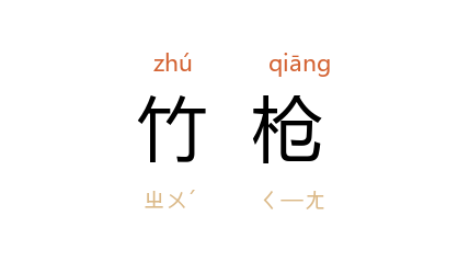 ⒊ 指一种儿童玩具。前蜀韦庄有《旅次甬西见儿童以竹枪纸旗戏为陈列》诗。