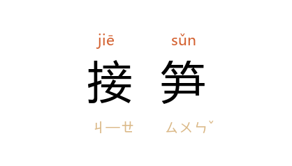 ⒈ 笋,榫头。接笋指榫头相接。比喻事物首尾一贯,配合得当。也作「接榫」。