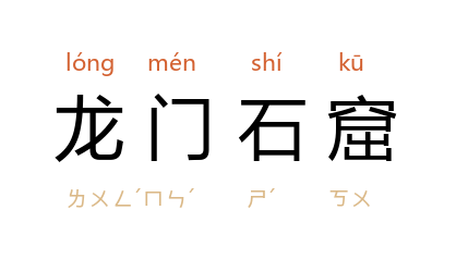 ⒈ 在河南省洛阳市南伊河两岸龙门山(西山)和香山(东山)。开凿于北魏迁都洛阳前后,延续至唐代。以唐代开元以前最多。现存石窟一千三百五十二个、佛龛七百八十五个、造像十万尊。主要洞窟有潜溪寺、宾阳三洞、万佛洞、莲花洞、奉先寺、古阳洞、看经寺等,尤以奉先寺卢舍那佛(高1714米)最著名。与大同云冈石窟和敦煌莫高窟并称中国三大石窟群。为全国重点文物保护单位。