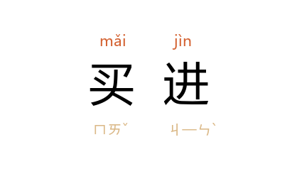 ⒈ 为弥补股份或商品的空额的买进行为或过程。