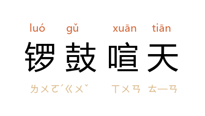 引元·关汉卿《单鞭夺槊·第四折》:「早来到北邙前面,猛听的锣鼓喧天。」