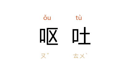 ⒈ 胃壁收缩异常,食物逆出口外,称为「呕吐」。多由胃病、中毒或精神作用而起。