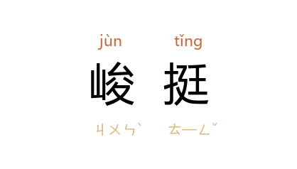 引《文选·张协<七命>》:“摇刖峻挺,茗邈苕嶢。”吕延济 注:“峻,高也;挺,出也。”宋 范成大 《吴船录》卷上:“院有 普贤阁,回环十七峰绕之。背倚 白崖峰,右傍最高而峻挺者,曰 呼应峰。”