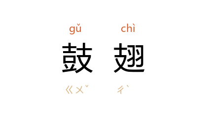 引《战国策·楚策四》:“﹝黄雀﹞俯噣白粒,仰栖茂树,鼓翅奋翼,自以为无患,与人无争也。”宋 苏轼 《鸦种麦行》:“徐行俛仰若自矜,鼓翅跳踉上牛角。”何其芳 《试看天地翻覆》:“鼓翅乘风而上九万里的鲲鹏。”