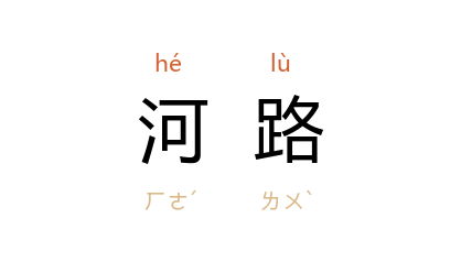 引《宋史·食货志上三》:“自是 江 汴 之舟,混转无辨,挽舟卒有终身不还其家、老死河路者。”《醒世恒言·大树坡义虎送亲》:“原来这稍公,名叫做 张稍,不是个善良之辈,惯在河路内做些淘摸生意的。”清 叶廷琯 《吹网录·三河县辽碑》:“闻至夏,河路暴涨,西泛东泝。”