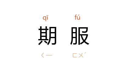 ⒉ 齐衰为期一年的丧服。旧制,凡服丧为长辈如祖父母、伯叔父母、未嫁的姑母等,平辈如兄弟、姐妹、妻,小辈如侄、嫡孙等,均服期服。又如子之丧,其父反服,已嫁女子为祖父母、父母服丧,也服期服。