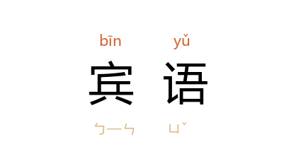 ⒈ 语法术语。受动词支配的成分,表示动作涉及的人或事物。在现代汉语中,宾语一般在动词的后面,常用名词或代词来充当,用来回答“谁?”或“什么?”。例有时候一个动词可以带两个宾语。例如“教我们历史”中的“我们”和“历史”。