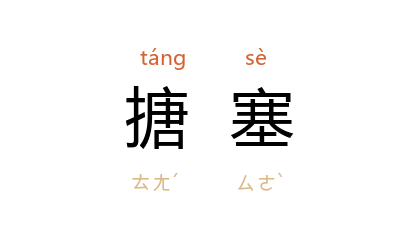 《文明小史·第六回》:「现在依我的愚见,碰著有钱的,就放松些,碰著没有钱的,就拿他两个来搪塞搪塞,也卸我们的干系。」