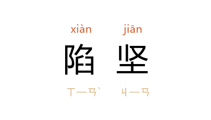 引《史记·魏其武安侯列传》:“灌孟 年老, 潁阴侯 彊请之,鬱鬱不得意,故战常陷坚,遂死 吴 军中。”《文选·左思<吴都赋>》:“士有陷坚之鋭,俗有节概之风。”刘逵 注:“太公 《阴符经》曰:无坚不陷。”《宋书·蒯恩传》:“﹝ 蒯恩 ﹞常陷坚破阵,不避艰嶮。”明 姚士粦 《见只编》卷上:“明日 龚 復先登陷坚,虏以数万骑蹂之,一鼓而尽。”