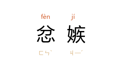 引《陈书·华皎传》:“逆天反地,人神忿嫉。”《南史·梁邵陵王纶传》:“贼徒忿嫉,咸劝除之。”章炳麟 《国家论》:“遂令志其事者,豪毛未动,先有矜众自贵之心,事之既成,又羣奉以为大长,斯最可忿嫉者。”