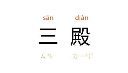 ⒊ 宋时太皇太后在世,与皇太后、皇后并称三殿;若无太皇太后,则天子与太后、皇后亦称三殿。