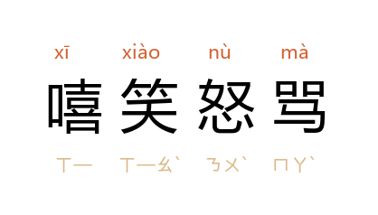 ⒈ 指嬉戏、欢笑、愤怒、詈骂等不同的情绪表现。