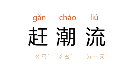 引陈登科 《赤龙与丹凤》五:“他为了标榜自己革新赶潮流,是革命者,是 孙中山 的信徒,便将辫子剪掉,剃成一个青皮大鸭蛋似的光葫芦头。”周克芹 《许茂和他的女儿们》第四章:“郑百如 那个规划全是瞎胡闹,也许他自己还没弄清楚呢,不过是为了赶潮流,临时翻翻报纸文件,胡乱凑了出来应付上级领导。”