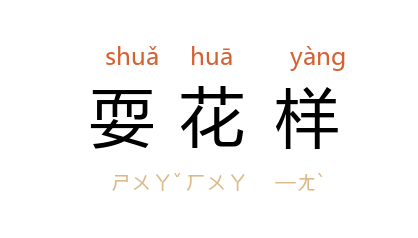 引毛泽东 《赫尔利和蒋介石的双簧已经破产》:“对于这些,你们一件也不做,却在所谓召开‘国民大会’的时间问题上耍花样,这是连三岁小孩子也欺骗不了的。”柳青 《创业史》第一部第二四章:“她难受极了,悔不该在 黄堡 桥头和 生宝 谈亲事的时候耍花样。”