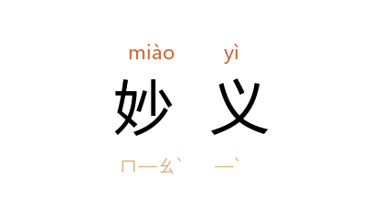 引南朝 梁简文帝 《请幸同泰寺开讲》:“被微言於王舍,集妙义於寳坊。”南朝 陈 徐陵 《丹阳上庸路碑》:“后王降德,於众兆民,高文象纬,妙义几神。”清 吴伟业 《赠苍雪》诗:“稽首香花巖,妙义足今古。”