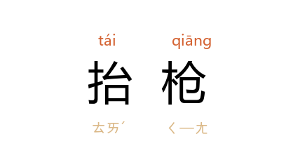 ⒈ 同“擡枪”。过去使用的一种火器。枪筒粗长,发射时装上火药和铁砂,枪筒放在一人肩上,由另一人点导火线。