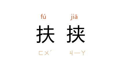 引汉 袁康 《越绝书·外传记吴王占梦》:“见前园横索生树桐,乐府吹巧也;见后房锻者扶挟鼓小震者,宫女鼓乐也。”《汉书·蔡义传》:“义 为丞相时年八十餘……行步俛僂,常两吏扶夹乃能行。”《后汉书·祭祀志上》“后有圣人,正失误,刻石记” 刘昭 注引 汉 应劭 《汉官·马第伯<封禅仪记>》:“两从者扶挟。”