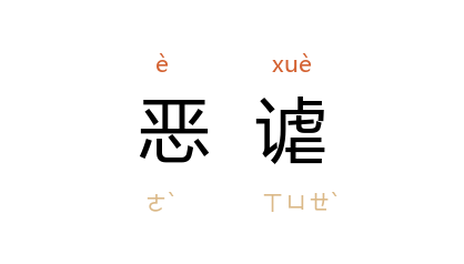 引鲁迅 《中国小说史略》第二八篇:“﹝《孽海花》﹞于 洪 傅 特多恶謔,并写当时达官名士模样,亦极淋漓。”端木蕻良 《科尔沁旗草原》八:“他痴痴地望定了房顶,这是苍蝇、蚊子、臭虫的腐臭的恶谑呵。我竟会受了这样一个人的包围与摆布吗?”
