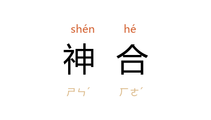 引唐 元稹 《莺莺传》:“心邇身遐,拜会无期,幽愤所钟,千里神合。千万珍重!”清 侯方域 《倪云林十万图记》:“盖所谓百年智巧,消磨欲尽,而后意动天机,神合自然,难为粉墨者道也。”