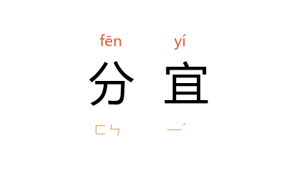 ⒈ 县名。属 江西省。宋 雍熙 年,分 宜春 等十一乡置县,故名“分宜”。参阅《太平寰宇记·袁州》。