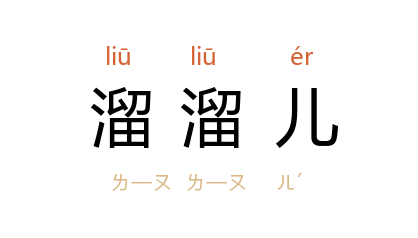 例如:「风溜溜儿吹来,树枝摇动像在招手一般。」