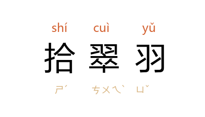 ⒈ 词牌名。取自三国魏曹植《洛神赋》“或拾翠羽”句。双调六十八字,前后片各七句,四仄韵。参阅《词谱》卷十六。