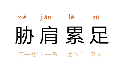 引《史记·吴王濞列传》:“吴王 身有内病,不能朝请二十餘年,尝患见疑,无以自白,胁肩累足,犹惧不见释。”汉 刘向 《列女传·鲁义姑娣》:“夫如是则胁肩无所容,而累足无所履也。”