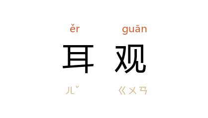 引明 王世贞 《艺苑卮言》卷七:“晚节始极旁搜,使事该切,措法操纵,虽思探溟海,而不堕魔境。世之耳观者,乃谓其比前少退,可笑也。”明 王世贞 《与俞仲蔚书》之十:“僕自寳 褚河南 《哀册》,后偶再閲 宋景濂、方希古 二跋,定知彼所见 詹 本之为摹,或为贋也,第恐耳观者翻据以蜉蝣撼我。”