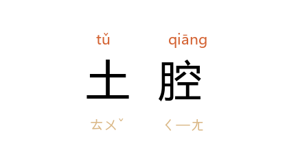 引许地山 《公理战胜》:“在我耳边恍惚有一个说话带乡下土腔的说:‘一个洋皇上生日倒比什么都热闹。’”曹靖华 《忆当年,穿着细事且莫等闲看!》:“如此‘土气’的穿着,加之满口土腔,甚至问路,十九者遭到白眼。”