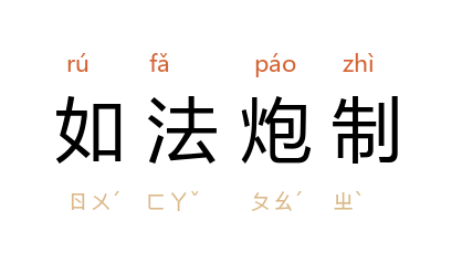 引《儿女英雄传》第五回:“等明日早走,依旧如法炮製,也不怕他飞上天去。”
