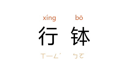 ⒈ 僧侣游方时所带的钵盂。亦借指人们出行时所携的食具。