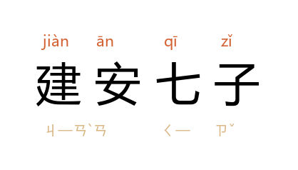引汉 末 建安 ( 献帝 年号)时期 孔融、陈琳、王粲、徐干、阮瑀、应瑒 和 刘桢 七人,同时以文学齐名, 曹丕 《典论·论文》云:“斯七子者,於学无所遗,於辞无所假,咸以自骋驥騄於千里,仰齐足而并驰。”