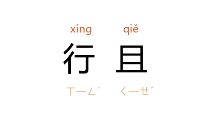 引唐 韩愈 《答刘秀才论史书》:“苟加一职荣之耳。非必督责迫蹙令就功役也。贱不敢逆盛指,行且谋引去。”宋 赵与时 《宾退录》卷九:“﹝ 康节先生 ﹞《观盛化吟》有云:‘生来只惯见丰稔,老去未尝见乱离。’其子谓乱离之语太过。 康节 嘆曰:‘吾老且死矣,汝辈行且知之。’”清 戴名世 《<齐讴集>自序》:“余行且归隐故山,终身弗出,纵观古人之诗,而因以有吐发愤懣之什,或有当乎?”