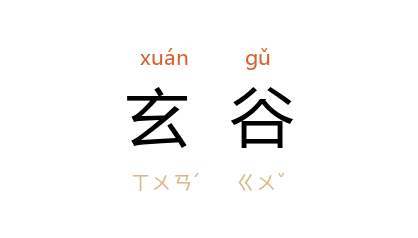 ⒈ 幽深的山谷。道教指肾。