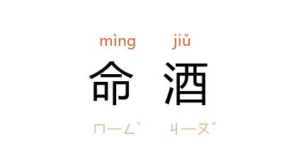 引唐 白居易 《琵琶行》序:“遂命酒,使快弹数曲。”《旧唐书·懿宗纪》:“崔雍 任居牧守,贼犯州城,御捍曾不发言,从容乃与命酒。”清 李清 《三垣笔记·崇祯》:“日就晡,上鱼服出宫门,两出两返,乃命酒。”清 侯方域 《宁南侯传》:“世威 排闥呼曰:‘左将军,富贵至矣!速命酒饮我。’”